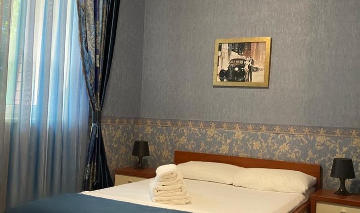 В номере: диван, зеркало, кровать двуспальная, прикроватные тумбочки, стол, стулья, кондиционер, мини-холодильник, сейф, телевизор ЖК, телефон